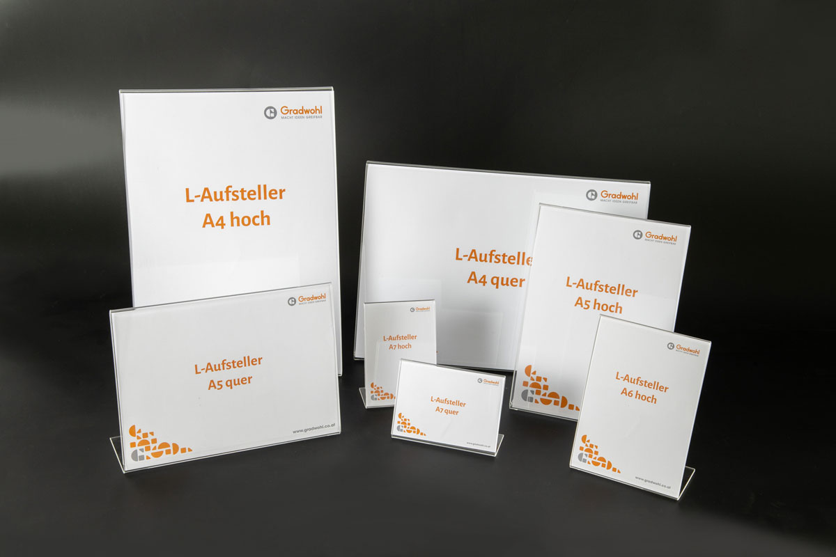 Für hochwertige Präsentation vielseitig einsetzbar. Schnell und einfach Werbung platzieren, für Aktionen, als Preisschild, als Menükartenhalter und vieles mehr. Glasklar aus 2mm Acryl transparent, gelasert, 2x gekantet. Der Einleger aus Papier lässt sich jederzeit leicht tauschen. Die L-Aufsteller werden in Verpackungseinheiten zu 50 Stück geliefert.
